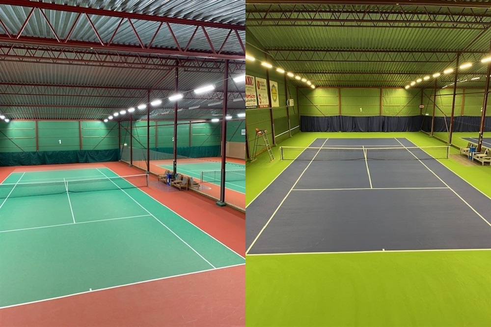 Det nya golvet är en så kallad Softcourt, en kraftig gummimatta som målas i flera lager. Vi kommer att ha ett likadant underlag som bl a finns i Kungliga tennishallen i Stockholm. Det känns fantastiskt att vi kommer att få en toppmodern anläggning som kommer att ge oss fina förutsättningar för tennisspel. För våra spelare som tävlar så kommer de nu att kunna träna på liknande underlag som de möts av när de tävlingsspelar i andra hallar.